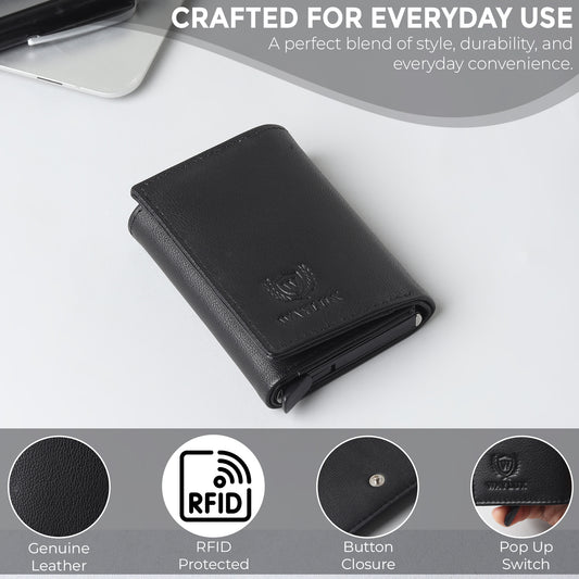 Waylux Genuine leather Tri-fold Wallet - RFID Protected I Pop up card holder