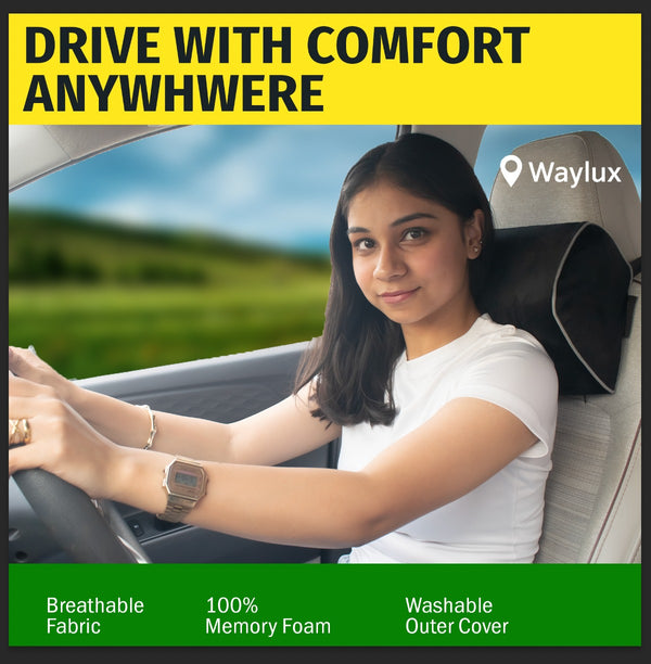 Waylux Car Neck Rest Pillow for Driving – Memory Foam Ergonomic Headrest Support
