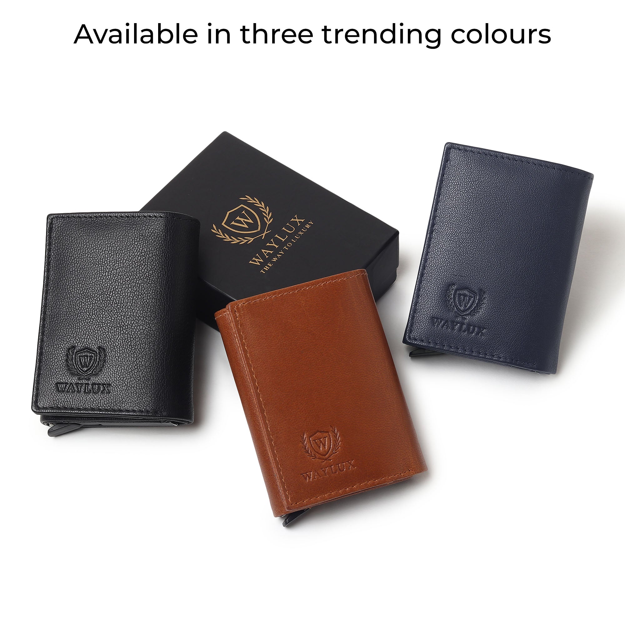 Upgrade your everyday carry with this Men’s Genuine Leather Tri-Fold Wallet with Pop-Up Card Holder & RFID Protection. Designed for modern men, this wallet combines style, security, and practicality. Made from premium genuine leather, the wallet ensures durability while giving a classy look. The tri-fold design provides multiple compartments to organize your cash, coins, and IDs with ease.
