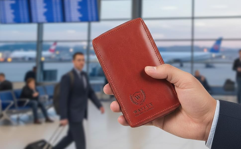 Travel smarter with the Waylux Travel Passport Organizer a premium vegan leather case designed to keep all your essentials in one place. It holds your passports, boarding passes, cards, cash, and important documents with ease. Featuring 7 card slots, space for 2 passports, a secure zipper, and a roomy currency compartment, it keeps everything protected and easy to access. Sleek, durable, and travel friendly, it’s the perfect companion for every journey.